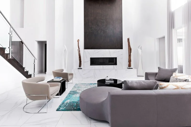 The furniture gives an image quality to the space, while the white walls and clean lines enhance the modern style of the design.