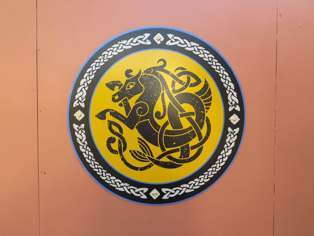 The walls of the work are lined with circular images, including one with the Lost Continent logo itself.