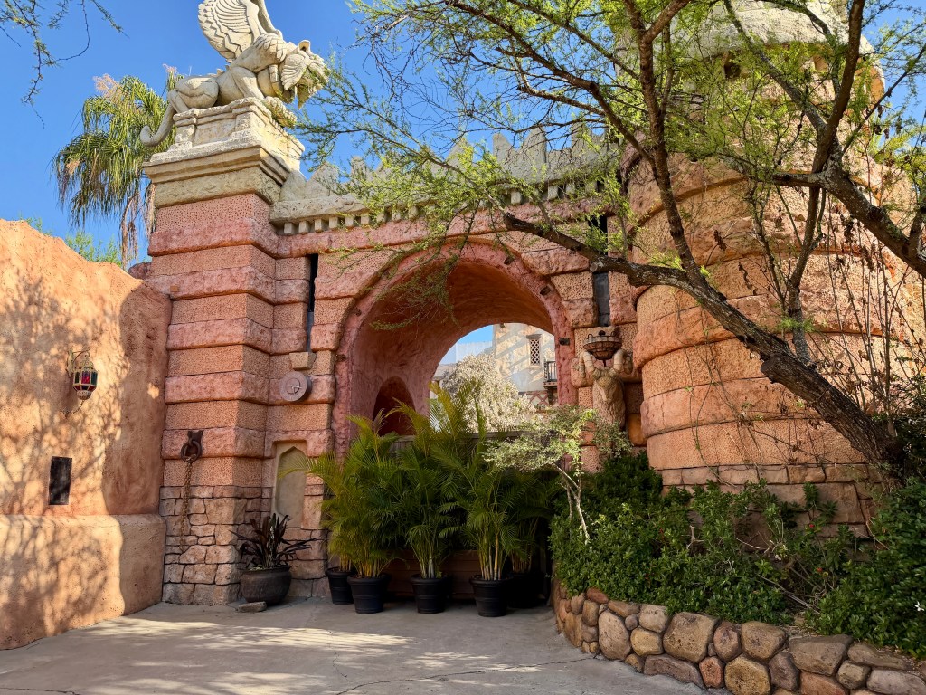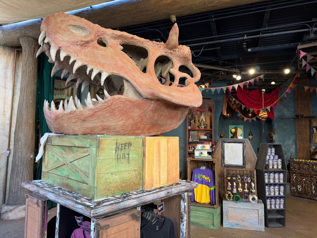 The new open market at the Port of Entry has some decorations that were originally seen in the Lost Continent, as well as new built-in pieces, such as a Carnotaurus skull on a crate with a mysterious message, (which may be a reference to the recently closed DinoLand, USA at Disney’s Animal Kingdom).